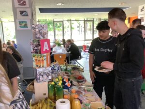 Die Fairtrade-AG der Kaulbach-Schule lud am 21.05.2025 die Klasse H8a und ihre Lehrer zum traditionellen „Fairen Frühstück“ in die Schulcafeteria ein.