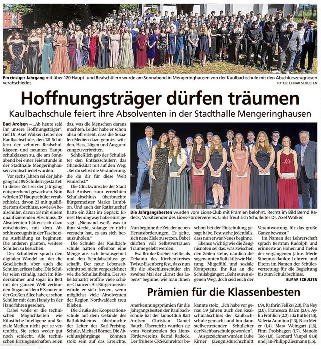 Abschlussschüler dürfen träumen Veröffentlicht am 1. Juli 2025 von Sandra RiebelingWLZ vom 30.06.2025