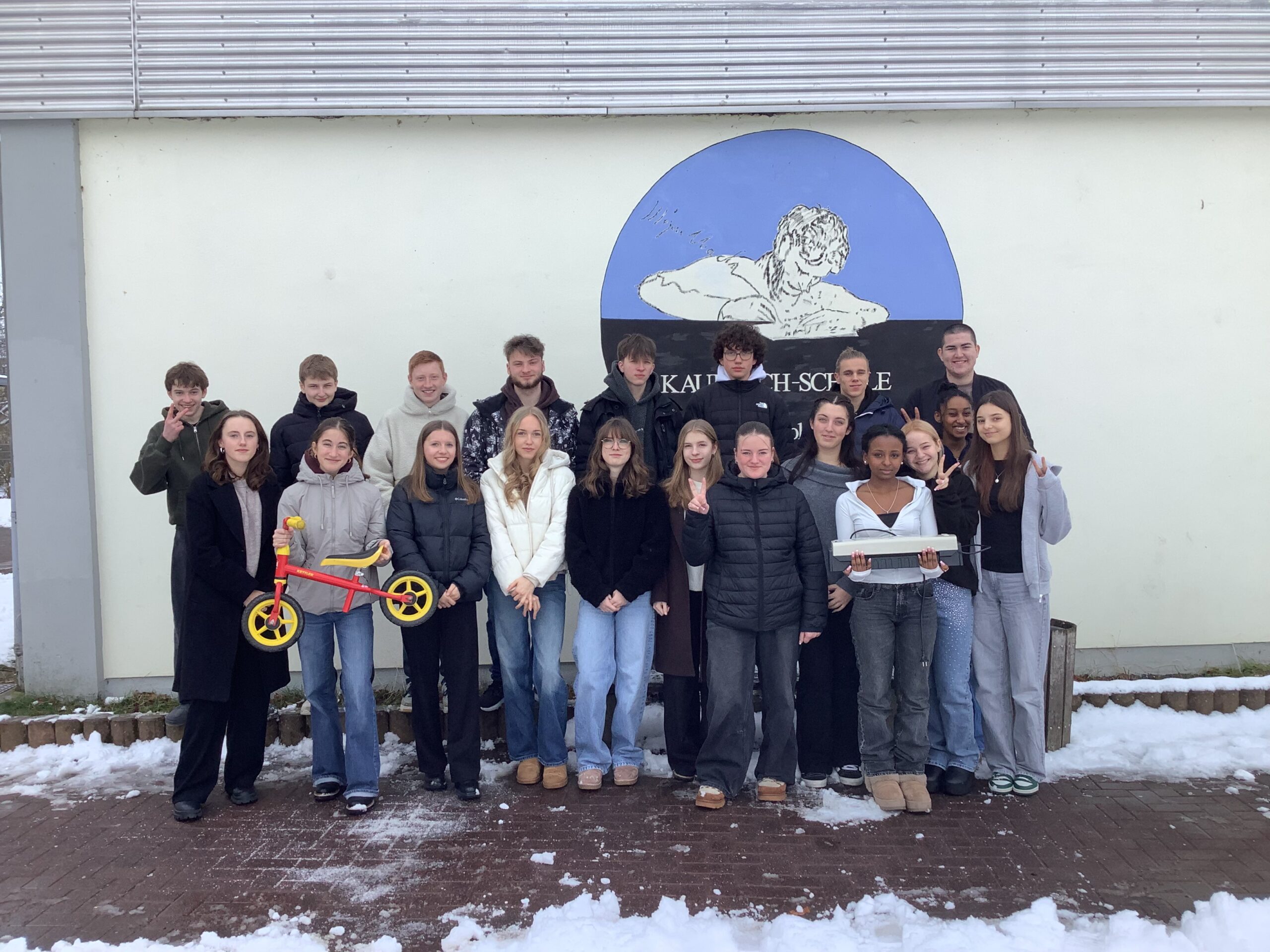 Auch in diesem Schuljahr (2026) startete die Veggie-Day zum wiederholten Male an der Kaulbach-Schule. Schülerinnen und Schüler überzeugten diesmal die Lehrerschaft mit gesunden Snacks, dabei verzichteten sie auf Wurstwaren zum Wohle des Tieres. Dass man dadurch gesundheitliche und ökologische Vorteile hat, weiß die R10a. Sie haben verstanden, dass Verzehr von Rind- und Schweinefleisch verursacht viele Emissionen. Kühe produzieren Methan, ein starkes Treibhausgas. Außerdem benötigen sie Futtermittel, zum Beispiel Soja. Dafür werden große Flächen gebraucht, was mit Abholzung im Amazonas zu tun hat. Transport, Verarbeitung und Kühlung von Wurstwaren erhöht zusätzlich den CO2- Ausstoß.