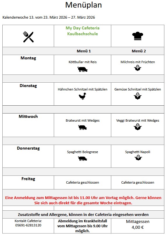 Guten Appetit wünscht das Team der Cafeteria.