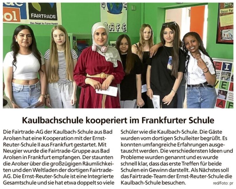 Die Fairtrade-AG unserer Schule beteiligte sich auch dieses Jahr bei der Kakaokampagne „Sweet Revolution“, die vom 01.- 24.12 stattfindet. In der Eingangshalle der Kaulbach – Schule wurden am 03.12.2025 Kakao aus fairen Handel, Bio-Fair-Trade-Schokoladen und Bio-Fair-Trade-Lebkuchen an unsere Schülerschaft verschenkt. Die Kampagne setzt sich dafür ein, dass Schokolade aus fairem Handel nicht nur ein Genuss, sonders auch ein Zeichen der Solidarität ist. Schokolade macht glücklich und wird besonders gern zu Anlässen wie Weihnachten, Geburtstagen oder als kleines Dankeschön verschenkt. Doch ihr wichtigster Inhaltsstoff, der Kakao, besitzt eine lange Geschichte der Ausbeutung von Mensch und Umwelt. Urwälder wurden durch Monokulturplantagen ersetzt. Die arbeitende Landbevölkerung erhält nur Hungerlöhne für die Knochenarbeit auf den Feldern. Der Bio- Fairtrade- Kakao verhindert die Ausbeutung von Mensch und Natur. Gemeinsam mit der „Sweet Revolution“ Kampagne sorgt die Fairtrade- AG dafür, dass die Weihnachtszeit nicht nur süß sondern auch gerecht ist und die Kakaobäuerinnen und Kakaobauer weltweit unterstützt werden.